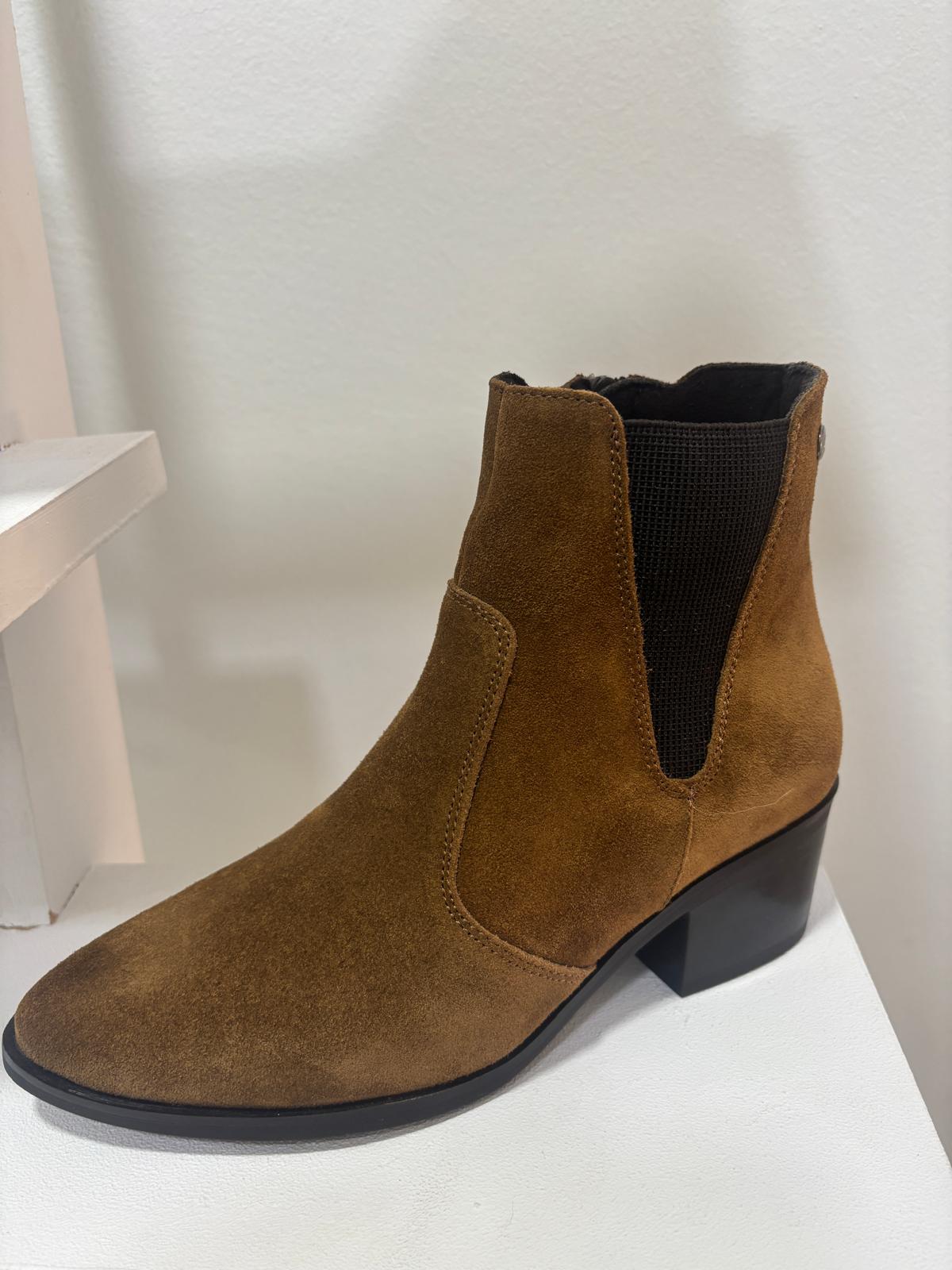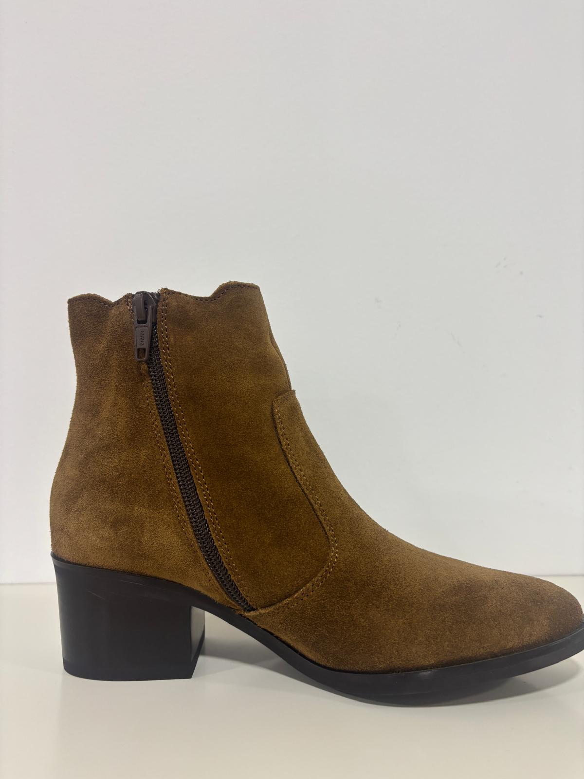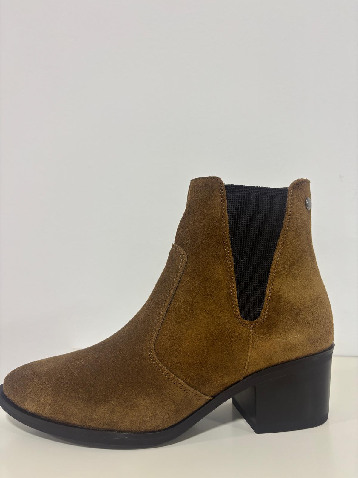 Botín tipo cowboy en piel, fabricado en España. con cremallera en la parte interna y elástico en la parte exterior, para los tobillos mas gorditos. Tacón de goma muy cómodo y no pesan nada. su interior esta forrado para más comodidad
