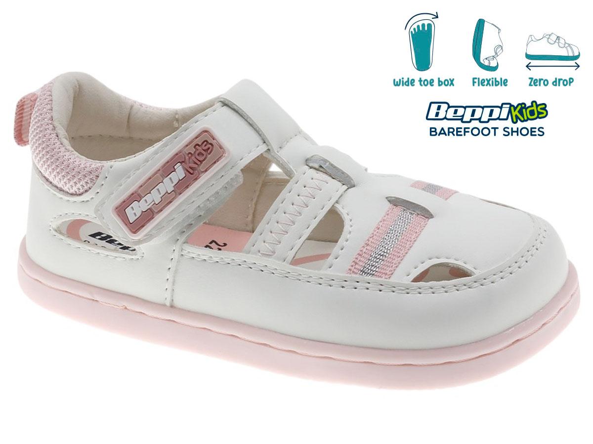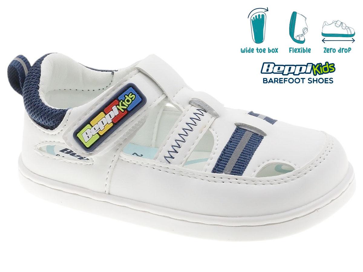• Sandalia cerrada respetuosa en dos tonos, Blanca y azul para los niños y Blanco y Rosa para las niñas